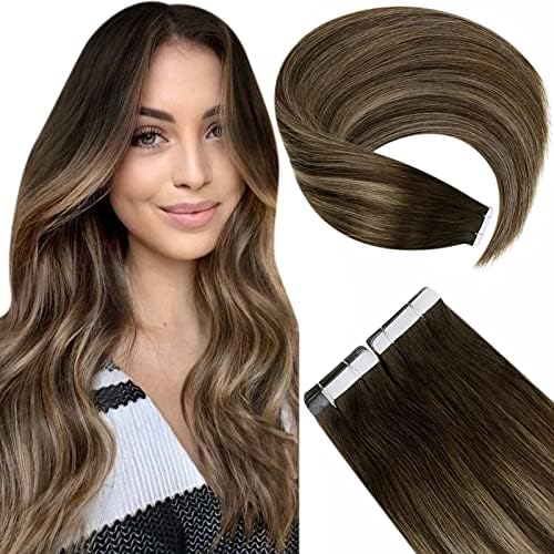 Laavoo 18inch Tape In Hair Extensions Human Hair Balayage Dark Brown To Light Blonde Highlights Double Sided Skin Weft Tape In Remy Hair Extensions Dip Dyed Glue In Human Hair 20pcs 50g